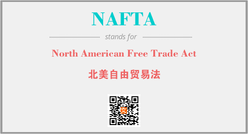 英文缩略词“NAFTA”经常作为“North American Free Trade Act”的英文缩写来使用,中文表示:“北美自由贸易法”。本文将详细介绍英文缩写词NAFTA所代表英文单词,其对应的中文拼音、详细解释以及在英语中的流行度。此外,还有关于缩略词NAFTA的分类、应用领域及相关应用示例等。