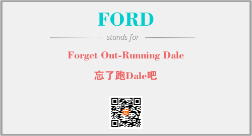 以上为Forget Out-Running Dale英文缩略词FORD的中文解释,以及该英文缩写在英语的流行度、分类和应用领域方面的信息。