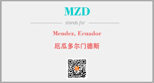 英文缩略词“MZD”经常作为“Mendez, Ecuador”的英文缩写来使用,中文表示:“厄瓜多尔门德斯”。本文将详细介绍英文缩写词MZD所代表英文单词,其对应的中文拼音、详细解释以及在英语中的流行度。此外,还有关于缩略词MZD的分类、应用领域及相关应用示例等。