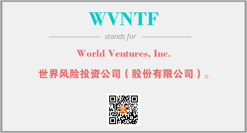 上述内容是“World Ventures, Inc.”作为“WVNTF”的缩写,解释为“世界风险投资公司(股份有限公司)。”时的信息,以及英文缩略词WVNTF所代表的英文单词,其对应的中文拼音、详细解释以及在英文中的流行度和相关分类、应用领域及应用示例等。