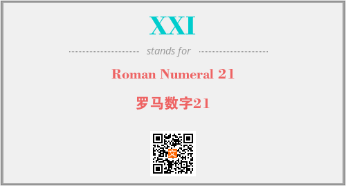英文缩略词“XXI”经常作为“Roman Numeral 21”的英文缩写来使用,中文表示:“罗马数字21”。本文将详细介绍英文缩写词XXI所代表英文单词,其对应的中文拼音、详细解释以及在英语中的流行度。此外,还有关于缩略词XXI的分类、应用领域及相关应用示例等。