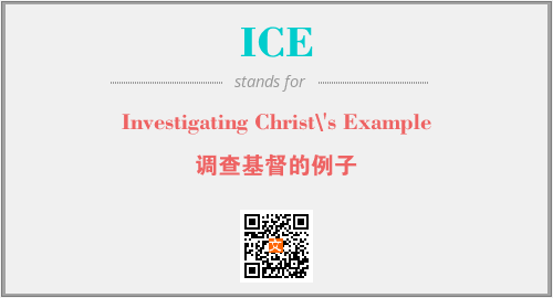 上述内容是“Investigating Christ\'s Example”作为“ICE”的缩写,解释为“调查基督的例子”时的信息,以及英文缩略词ICE所代表的英文单词,其对应的中文拼音、详细解释以及在英文中的流行度和相关分类、应用领域及应用示例等。