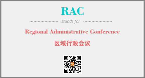 英文缩略词“RAC”经常作为“Regional Administrative Conference”的英文缩写来使用,中文表示:“区域行政会议”。本文将详细介绍英文缩写词RAC所代表英文单词,其对应的中文拼音、详细解释以及在英语中的流行度。此外,还有关于缩略词RAC的分类、应用领域及相关应用示例等。
