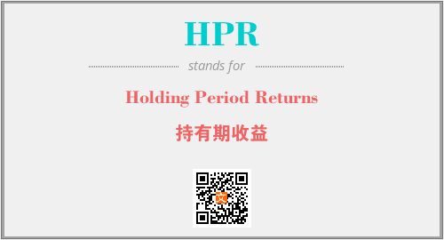 英文缩略词“HPR”经常作为“Holding Period Returns”的英文缩写来使用,中文表示:“持有期收益”。本文将详细介绍英文缩写词HPR所代表英文单词,其对应的中文拼音、详细解释以及在英语中的流行度。此外,还有关于缩略词HPR的分类、应用领域及相关应用示例等。