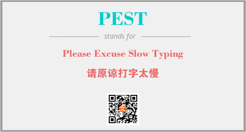 以上为Please Excuse Slow Typing英文缩略词PEST的中文解释,以及该英文缩写在英语的流行度、分类和应用领域方面的信息。