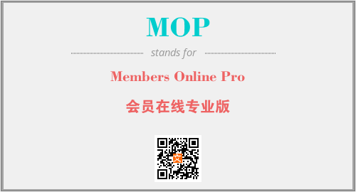 上述内容是“Members Online Pro”作为“MOP”的缩写,解释为“会员在线专业版”时的信息,以及英文缩略词MOP所代表的英文单词,其对应的中文拼音、详细解释以及在英文中的流行度和相关分类、应用领域及应用示例等。