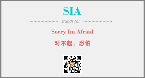 以上为Sorry Im Afraid英文缩略词SIA的中文解释,以及该英文缩写在英语的流行度、分类和应用领域方面的信息。