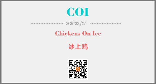 上述内容是“Chickens On Ice”作为“COI”的缩写,解释为“冰上鸡”时的信息,以及英文缩略词COI所代表的英文单词,其对应的中文拼音、详细解释以及在英文中的流行度和相关分类、应用领域及应用示例等。