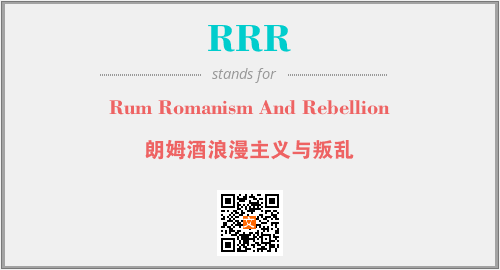 上述内容是“Rum Romanism And Rebellion”作为“RRR”的缩写,解释为“朗姆酒浪漫主义与叛乱”时的信息,以及英文缩略词RRR所代表的英文单词,其对应的中文拼音、详细解释以及在英文中的流行度和相关分类、应用领域及应用示例等。