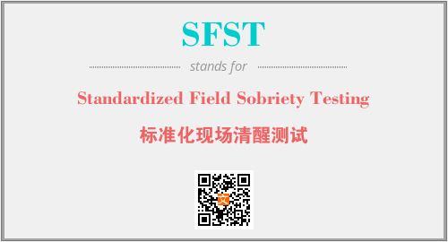 以上为Standardized Field Sobriety Testing英文缩略词SFST的中文解释,以及该英文缩写在英语的流行度、分类和应用领域方面的信息。