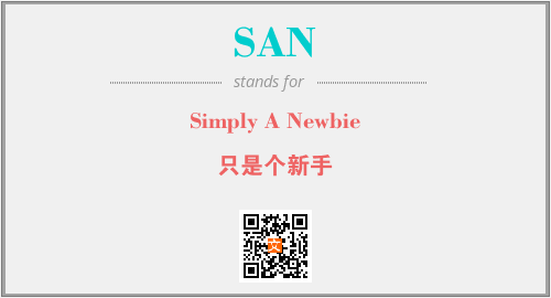 英文缩略词“SAN”经常作为“Simply A Newbie”的英文缩写来使用,中文表示:“只是个新手”。本文将详细介绍英文缩写词SAN所代表英文单词,其对应的中文拼音、详细解释以及在英语中的流行度。此外,还有关于缩略词SAN的分类、应用领域及相关应用示例等。