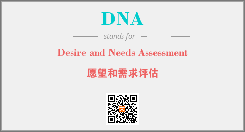 以上为Desire and Needs Assessment英文缩略词DNA的中文解释,以及该英文缩写在英语的流行度、分类和应用领域方面的信息。