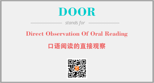 英文缩略词“DOOR”经常作为“Direct Observation Of Oral Reading”的英文缩写来使用,中文表示:“口语阅读的直接观察”。本文将详细介绍英文缩写词DOOR所代表英文单词,其对应的中文拼音、详细解释以及在英语中的流行度。此外,还有关于缩略词DOOR的分类、应用领域及相关应用示例等。
