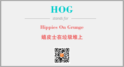 上述内容是“Hippies On Grunge”作为“HOG”的缩写,解释为“嬉皮士在垃圾堆上”时的信息,以及英文缩略词HOG所代表的英文单词,其对应的中文拼音、详细解释以及在英文中的流行度和相关分类、应用领域及应用示例等。
