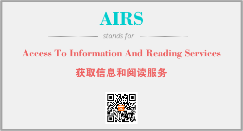 以上为Access To Information And Reading Services英文缩略词AIRS的中文解释,以及该英文缩写在英语的流行度、分类和应用领域方面的信息。