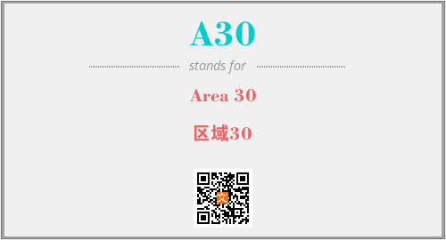 上述内容是“Area 30”作为“A30”的缩写,解释为“区域30”时的信息,以及英文缩略词A30所代表的英文单词,其对应的中文拼音、详细解释以及在英文中的流行度和相关分类、应用领域及应用示例等。