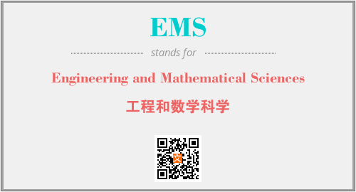 上述内容是“Engineering and Mathematical Sciences”作为“EMS”的缩写,解释为“工程和数学科学”时的信息,以及英文缩略词EMS所代表的英文单词,其对应的中文拼音、详细解释以及在英文中的流行度和相关分类、应用领域及应用示例等。