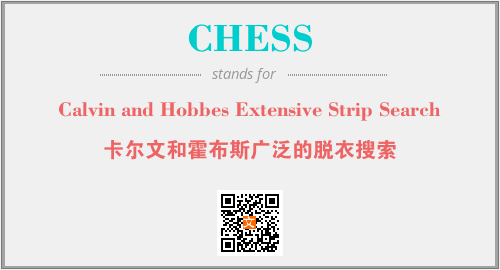 上述内容是“Calvin and Hobbes Extensive Strip Search”作为“CHESS”的缩写,解释为“卡尔文和霍布斯广泛的脱衣搜索”时的信息,以及英文缩略词CHESS所代表的英文单词,其对应的中文拼音、详细解释以及在英文中的流行度和相关分类、应用领域及应用示例等。
