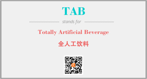 上述内容是“Totally Artificial Beverage”作为“TAB”的缩写,解释为“全人工饮料”时的信息,以及英文缩略词TAB所代表的英文单词,其对应的中文拼音、详细解释以及在英文中的流行度和相关分类、应用领域及应用示例等。