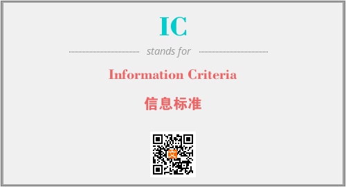 上述内容是“Information Criteria”作为“IC”的缩写,解释为“信息标准”时的信息,以及英文缩略词IC所代表的英文单词,其对应的中文拼音、详细解释以及在英文中的流行度和相关分类、应用领域及应用示例等。