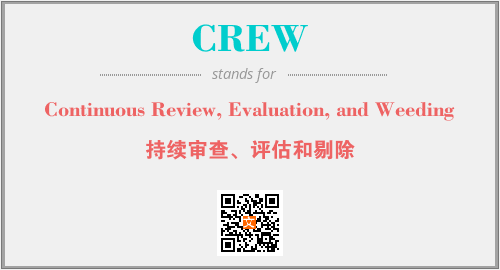 以上为Continuous Review, Evaluation, and Weeding英文缩略词CREW的中文解释,以及该英文缩写在英语的流行度、分类和应用领域方面的信息。