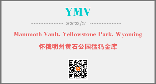 上述内容是“Mammoth Vault, Yellowstone Park, Wyoming”作为“YMV”的缩写,解释为“怀俄明州黄石公园猛犸金库”时的信息,以及英文缩略词YMV所代表的英文单词,其对应的中文拼音、详细解释以及在英文中的流行度和相关分类、应用领域及应用示例等。