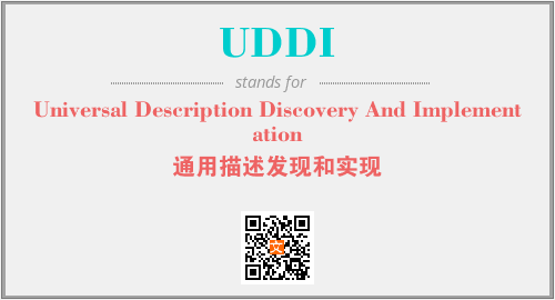 上述内容是“Universal Description Discovery And Implementation”作为“UDDI”的缩写,解释为“通用描述发现和实现”时的信息,以及英文缩略词UDDI所代表的英文单词,其对应的中文拼音、详细解释以及在英文中的流行度和相关分类、应用领域及应用示例等。