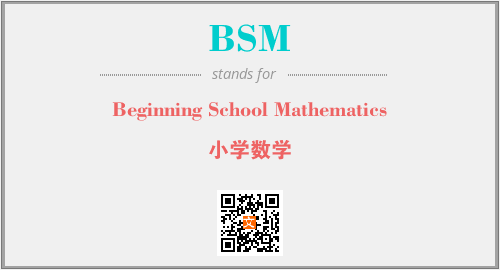 英文缩略词“BSM”经常作为“Beginning School Mathematics”的英文缩写来使用,中文表示:“小学数学”。本文将详细介绍英文缩写词BSM所代表英文单词,其对应的中文拼音、详细解释以及在英语中的流行度。此外,还有关于缩略词BSM的分类、应用领域及相关应用示例等。