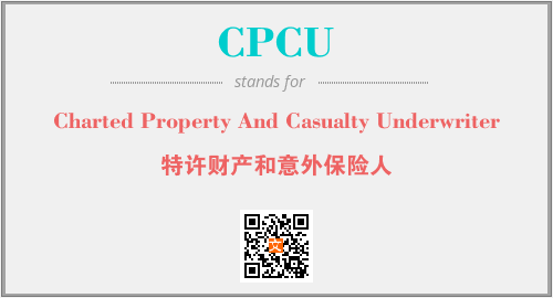 英文缩略词“CPCU”经常作为“Charted Property And Casualty Underwriter”的英文缩写来使用,中文表示:“特许财产和意外保险人”。本文将详细介绍英文缩写词CPCU所代表英文单词,其对应的中文拼音、详细解释以及在英语中的流行度。此外,还有关于缩略词CPCU的分类、应用领域及相关应用示例等。
