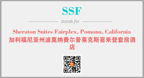 上述内容是“Sheraton Suites Fairplex, Pomona, California”作为“SSF”的缩写,解释为“加利福尼亚州波莫纳费尔普莱克斯喜来登套房酒店”时的信息,以及英文缩略词SSF所代表的英文单词,其对应的中文拼音、详细解释以及在英文中的流行度和相关分类、应用领域及应用示例等。