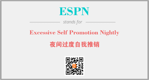 英文缩略词“ESPN”经常作为“Excessive Self Promotion Nightly”的英文缩写来使用,中文表示:“夜间过度自我推销”。本文将详细介绍英文缩写词ESPN所代表英文单词,其对应的中文拼音、详细解释以及在英语中的流行度。此外,还有关于缩略词ESPN的分类、应用领域及相关应用示例等。