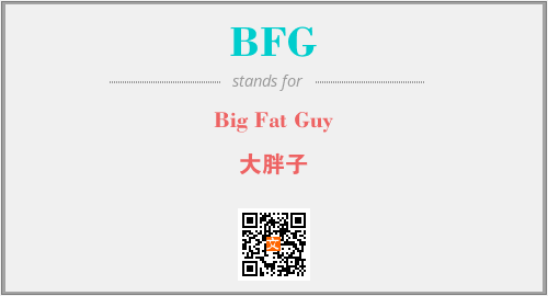 上述内容是“Big Fat Guy”作为“BFG”的缩写,解释为“大胖子”时的信息,以及英文缩略词BFG所代表的英文单词,其对应的中文拼音、详细解释以及在英文中的流行度和相关分类、应用领域及应用示例等。