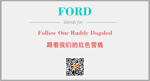 英文缩略词“FORD”经常作为“Follow Our Ruddy Dogsled”的英文缩写来使用,中文表示:“跟着我们的红色雪橇”。本文将详细介绍英文缩写词FORD所代表英文单词,其对应的中文拼音、详细解释以及在英语中的流行度。此外,还有关于缩略词FORD的分类、应用领域及相关应用示例等。