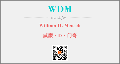 英文缩略词“WDM”经常作为“William D. Mensch”的英文缩写来使用,中文表示:“威廉·D·门奇”。本文将详细介绍英文缩写词WDM所代表英文单词,其对应的中文拼音、详细解释以及在英语中的流行度。此外,还有关于缩略词WDM的分类、应用领域及相关应用示例等。