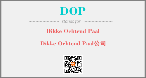 英文缩略词“DOP”经常作为“Dikke Ochtend Paal”的英文缩写来使用,中文表示:“Dikke Ochtend Paal公司”。本文将详细介绍英文缩写词DOP所代表英文单词,其对应的中文拼音、详细解释以及在英语中的流行度。此外,还有关于缩略词DOP的分类、应用领域及相关应用示例等。