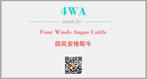 英文缩略词“4WA”经常作为“Four Winds Angus Cattle”的英文缩写来使用,中文表示:“四风安格斯牛”。本文将详细介绍英文缩写词4WA所代表英文单词,其对应的中文拼音、详细解释以及在英语中的流行度。此外,还有关于缩略词4WA的分类、应用领域及相关应用示例等。