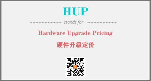 上述内容是“Hardware Upgrade Pricing”作为“HUP”的缩写,解释为“硬件升级定价”时的信息,以及英文缩略词HUP所代表的英文单词,其对应的中文拼音、详细解释以及在英文中的流行度和相关分类、应用领域及应用示例等。