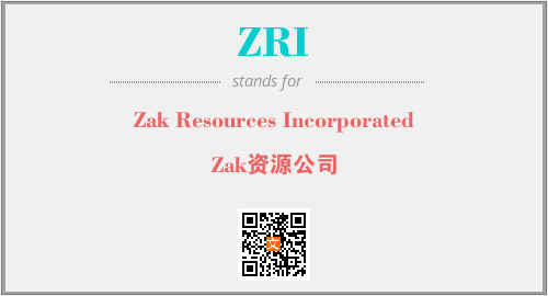 上述内容是“Zak Resources Incorporated”作为“ZRI”的缩写,解释为“Zak资源公司”时的信息,以及英文缩略词ZRI所代表的英文单词,其对应的中文拼音、详细解释以及在英文中的流行度和相关分类、应用领域及应用示例等。