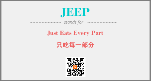 以上为Just Eats Every Part英文缩略词JEEP的中文解释,以及该英文缩写在英语的流行度、分类和应用领域方面的信息。