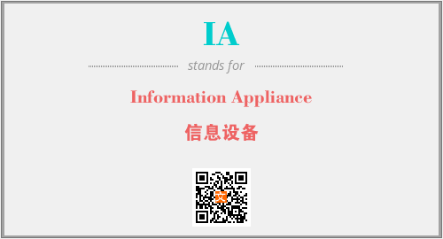 英文缩略词“IA”经常作为“Information Appliance”的英文缩写来使用,中文表示:“信息设备”。本文将详细介绍英文缩写词IA所代表英文单词,其对应的中文拼音、详细解释以及在英语中的流行度。此外,还有关于缩略词IA的分类、应用领域及相关应用示例等。