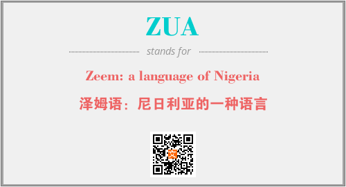 上述内容是“Zeem: a language of Nigeria”作为“ZUA”的缩写,解释为“泽姆语:尼日利亚的一种语言”时的信息,以及英文缩略词ZUA所代表的英文单词,其对应的中文拼音、详细解释以及在英文中的流行度和相关分类、应用领域及应用示例等。
