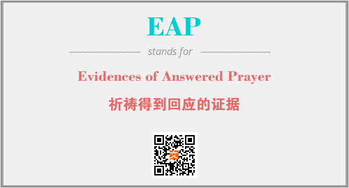 上述内容是“Evidences of Answered Prayer”作为“EAP”的缩写,解释为“祈祷得到回应的证据”时的信息,以及英文缩略词EAP所代表的英文单词,其对应的中文拼音、详细解释以及在英文中的流行度和相关分类、应用领域及应用示例等。