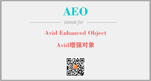 上述内容是“Avid Enhanced Object”作为“AEO”的缩写,解释为“Avid增强对象”时的信息,以及英文缩略词AEO所代表的英文单词,其对应的中文拼音、详细解释以及在英文中的流行度和相关分类、应用领域及应用示例等。