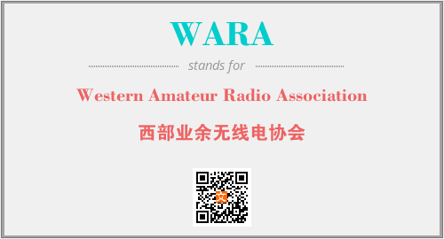 英文缩略词“WARA”经常作为“Western Amateur Radio Association”的英文缩写来使用,中文表示:“西部业余无线电协会”。本文将详细介绍英文缩写词WARA所代表英文单词,其对应的中文拼音、详细解释以及在英语中的流行度。此外,还有关于缩略词WARA的分类、应用领域及相关应用示例等。