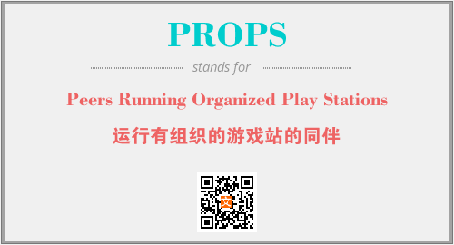 上述内容是“Peers Running Organized Play Stations”作为“PROPS”的缩写,解释为“运行有组织的游戏站的同伴”时的信息,以及英文缩略词PROPS所代表的英文单词,其对应的中文拼音、详细解释以及在英文中的流行度和相关分类、应用领域及应用示例等。