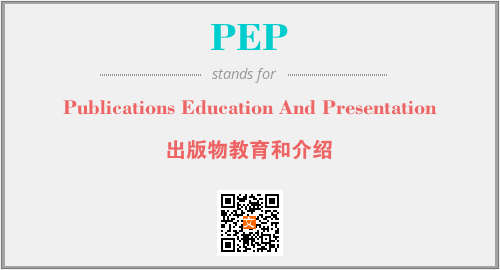 英文缩略词“PEP”经常作为“Publications Education And Presentation”的英文缩写来使用,中文表示:“出版物教育和介绍”。本文将详细介绍英文缩写词PEP所代表英文单词,其对应的中文拼音、详细解释以及在英语中的流行度。此外,还有关于缩略词PEP的分类、应用领域及相关应用示例等。