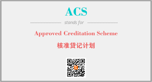 英文缩略词“ACS”经常作为“Approved Creditation Scheme”的英文缩写来使用,中文表示:“核准贷记计划”。本文将详细介绍英文缩写词ACS所代表英文单词,其对应的中文拼音、详细解释以及在英语中的流行度。此外,还有关于缩略词ACS的分类、应用领域及相关应用示例等。