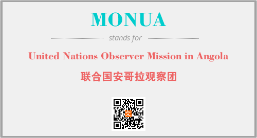 英文缩略词“MONUA”经常作为“United Nations Observer Mission in Angola”的英文缩写来使用,中文表示:“联合国安哥拉观察团”。本文将详细介绍英文缩写词MONUA所代表英文单词,其对应的中文拼音、详细解释以及在英语中的流行度。此外,还有关于缩略词MONUA的分类、应用领域及相关应用示例等。