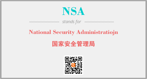 英文缩略词“NSA”经常作为“National Security Administratiojn”的英文缩写来使用,中文表示:“国家安全管理局”。本文将详细介绍英文缩写词NSA所代表英文单词,其对应的中文拼音、详细解释以及在英语中的流行度。此外,还有关于缩略词NSA的分类、应用领域及相关应用示例等。