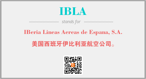 上述内容是“IBeria Lineas Aereas de Espana, S.A.”作为“IBLA”的缩写,解释为“美国西班牙伊比利亚航空公司。”时的信息,以及英文缩略词IBLA所代表的英文单词,其对应的中文拼音、详细解释以及在英文中的流行度和相关分类、应用领域及应用示例等。